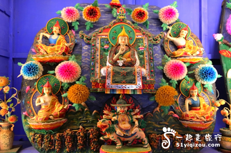 暑期,哪儿都是外出旅行的人,大家商量好,想去一次甘南,制定行程、订票、兰州集合。 行程安排: 兰州>>郎木寺>>扎尕那>>夏河>>同仁>>西宁 中午,我就到兰州了,安排好了酒店,等着其他的人到来。早上8点15分的分机,起早了点,先在酒店睡一觉吧! 吃一碗有名“马子禄”拉面,出发! 九层塔“米拉日吧佛阁”,我们在这里! 傍晚,赶到了郎木寺镇,安排好了入住,就出来溜达、觅食了!呵呵呵! 热闹繁华的郎木寺,已经不在宁静! 路边的烧烤摊,让你过足瘾! 昨晚,大家睡得都有点不踏实,一天直接上到3000多的海拔,难免会有高原反应,早上已经有人在酒店休息了。能扛着高反继续出来玩的,那都是生死之交啊!呵呵呵呵。。。。 郎木寺,四周的格桑花,开得那样的美丽! 白龙江旁休息的藏族妇女!渴了、累了喝江水! 格尔底寺,来个合影!大峡谷尽头的草原! 平穷、疾病也无法动摇他们的信仰! 休整了一晚,今天,我们要前往躲藏在大山深处的村落,传说是神仙用大拇指摁开的地方,是名副其实的香巴拉王国---扎尕那。 日照金山! 扎尕那,目前的消费还算便宜,一间房100元,吃饭比其他地方略高一点,但也过得去,毕竟物质匮乏啊! 早起看日出!仙境!!! 该回去吃早饭了,今天还要徒步去峡谷!这么险的路,怎么也得配匹马吧!300元/匹,我们人多要了两匹。老邱,加油!!! 第一个休息区,来一张! 老邱,带洗发水了没? 这山路!太惊险了!孩子们都很勇敢! 吃过晚饭路夏河,明天的安排拉卜楞寺!人再多也得来一张! 匆忙的赶往去大殿! 虔诚的信徒,每天无数次的转经,叩拜!让人感到信仰的力量! 惟妙惟肖的酥油花,每三年更新一次。今晚,住热同仁----“热贡文化艺术”,这里可是唐卡、堆绣、木雕之乡啊! 借用酒店的厨房,自己买菜做饭,改善一下伙食!天天牛羊肉也受不了啊!!! 明天,去隆务寺!夏日仓活佛的行宫! 中午,我们前往吾屯下寺,去拜会一位老朋友。是这位,热贡文化艺术,唐卡绘画大师----洛桑年智。 大师热情的邀请我们去他家做客。 糌粑、酥油茶、藏式馍、酸奶、饮料。 今天,让我从此改变了对糌粑的认识,是这么的好吃!一定要,赞!!!看她们吃得快心的样儿!还有藏式牦牛酸奶,浓稠、奶味儿十足,上面还有一层酥油!!! 吃过东西后,大师带我们在师院里逛了逛。闭关期,殿门都锁上了。但是,我们有大师带路,呵呵呵,畅行无阻!古老的寺院,还保留着原始的风貌!墙上挂满了大师和他徒弟的所绘的唐卡,大饱眼福啊!相聚总有分别时,我们告别了热贡,结束了最后一天的行程,回西宁! 西宁西关清真大寺,漂亮吧!!! 吃货---小猪!!!一路把羊肉吃尽转场“莫家街”小吃街,继续! 明天就要返程了,大家都不想早早的回酒店。买点清真的面包作午餐,回家!