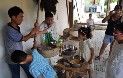 任务来了,磨一桶黄豆做豆腐。大家都干的有模有样的!!!