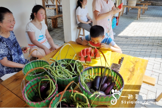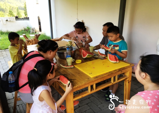 终于到了,大家都渴了、累了,吃点农庄自产的西瓜先!哈哈哈!
