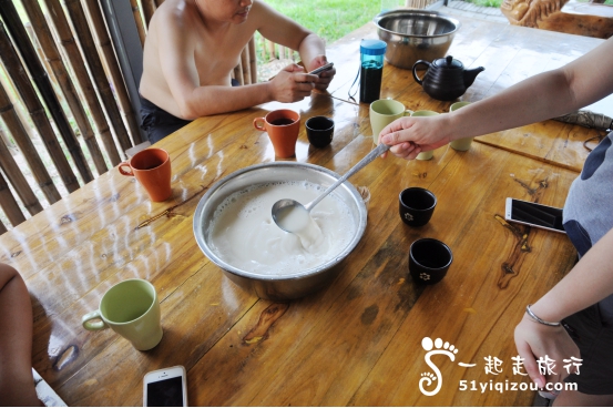 手工石磨豆浆,煮好了,不加糖也非常好喝!