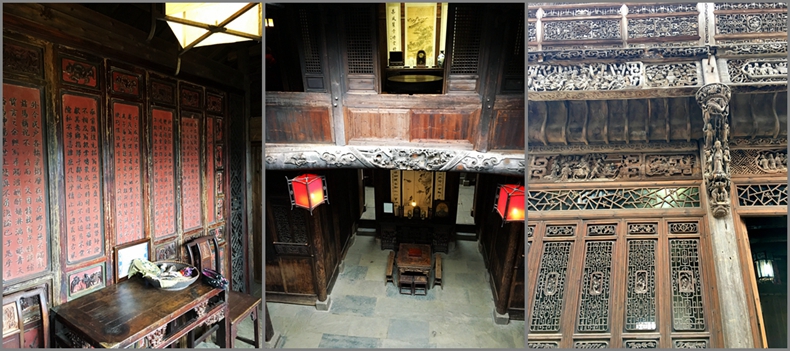 篁岭古村从民居、官宅到祠堂、牌坊,处处雕饰着精美的“徽三雕”图案。“徽三雕”是指徽派古建中的砖雕、石雕和木雕,是徽派建筑中最精华的部分,是古建艺术中最灿烂的篇章。“三雕”技艺,已列入首批国家级非物质文化遗产名录。