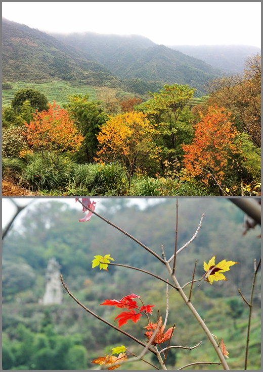 青山与梯田相接处,青的,绿的,黄的,橙的,红的,美不胜收。
