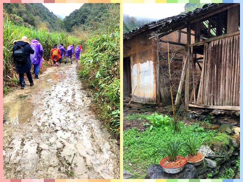 徒步见闻4:运气不好,碰上下雨,在泥泞的路上前行的小伙伴。还有路上经过的老房子!