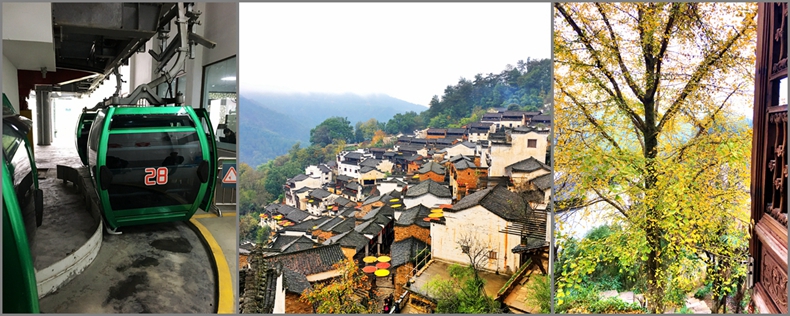 我们上山下山的交通工具——缆车,窗外的金******银杏树。