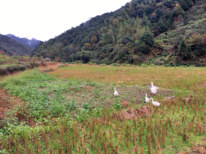 徒步见闻3:在稻草地里觅食的鹅。。。。
