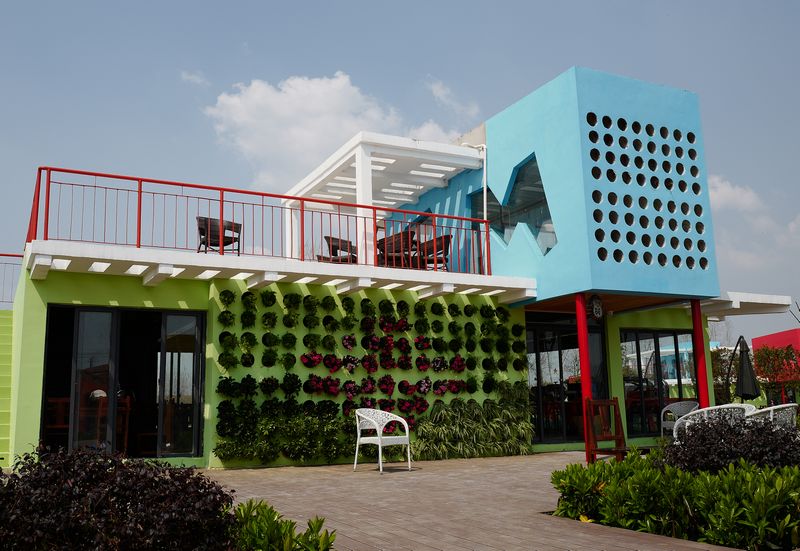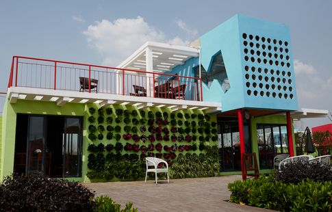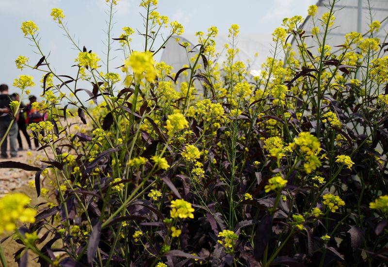 在花海里时间过得真快啊,偌大的油菜花田可以让我们走好久呢,玩的很尽兴,不过肚子饿了,去吃饭吧!集装箱餐厅,各种颜色的集装箱,上面点缀着花花草草,不错不错,快坐好准备开吃吧!吃过午饭还有活动呢~
