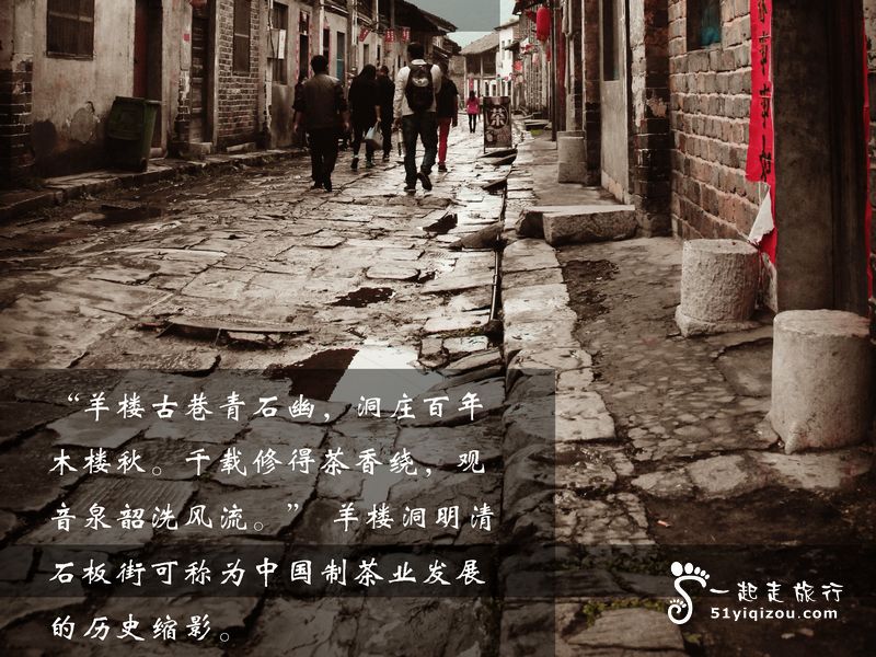 羊楼古巷青石幽, 洞庄百年木楼秋, 千载修得茶香绕, 观音泉韶洗风流. 喜欢喝茶的人一定听说过这个地方,赵李桥,一个有着千年历史文化的茶乡。4月23日,这个寻茶小分队自驾跟着一起走旅行的领队荣哥走进赵李桥,走进茶香里。 一段历史,一首老歌——老知青茶庄 一砖一瓦围起来的小小平方是我们老知青原来生活的地方。 醒目的标语,泛黄的报纸,陈旧的家具,无声的记录着那段难以忘却的峥嵘岁月。 寻茶小队的我们也许无法想象当年这里是怎样的一种光景,但是触摸着历史的残垣,我们依旧心怀感激,在茶的历史里我们也看到了一个年代的变迁。 绿野青青——千亩茶园 到了千亩茶园,寻茶小分队的眼神都亮了起来,绿绿的茶嫩嫩的芽,在茶园里愉快的采集,多少不重要,重要的是大家在一起,体验茶中乐。 从茶山出来一路轻松的小段行走,来到圆通寺。 万里欧亚茶路的起点——羊楼洞明清古街 古生古色的羊楼洞古街,有许多卖茶的人家,漫步在石板路上,别样的风情,就像在拍古装剧,寻茶小分队,咱们可是在万里欧亚茶路的起点哩~ 最后一站——赵李桥茶厂 茶堆起来的小通道,用来更好的储存茶叶。 由饼茶、帽合茶发展成青砖茶这一悠久的历史奠定了赵李桥专属的茶文化,在茶厂里看茶从制作到加工再到最后一堆堆叠起来的茶砖,每一道工序都是千百年传承演进的结果,来赵李桥走上这么一趟,学习了不少。探访茶之乡,一个香茶满萦的一天,在赵李桥起,也在赵李桥落。一起走旅行,因为有你,让行走不再孤单,让收获变得有意义,期待下一次的相遇。