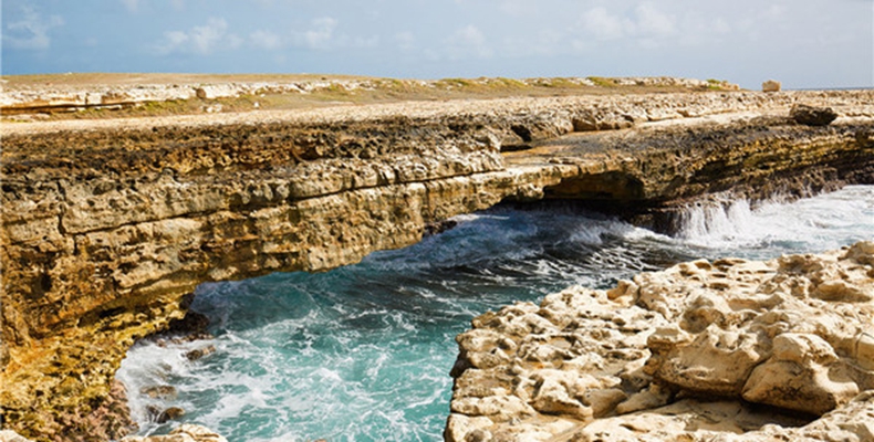 魔鬼桥位于安提瓜岛东部印度小镇,是一座由于常年海水冲刷而形成的天然石灰岩拱桥。